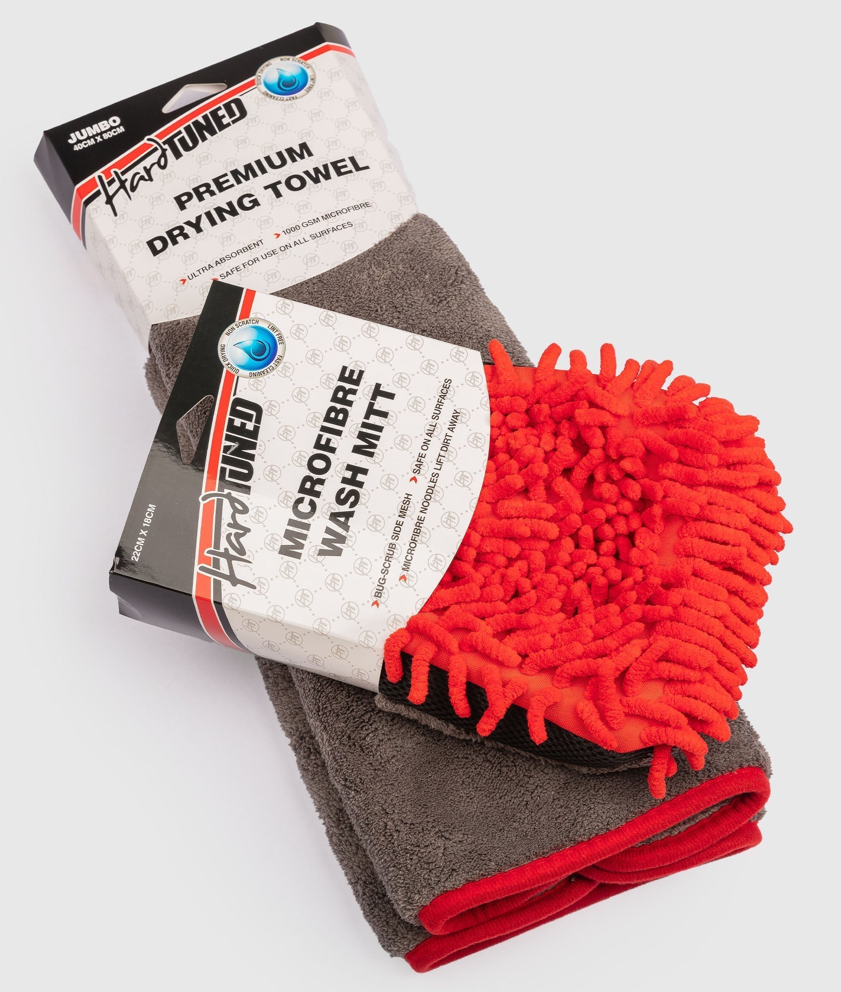 The set contains our large Hardtuned Drying Towel and our Microfiber Wash Mitt.