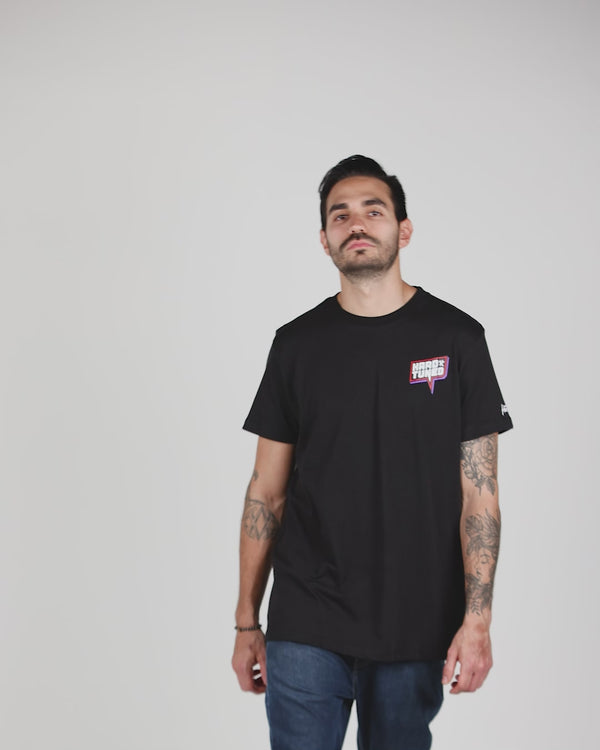 Printed in a bold cell block style with premium plastisol flex inks and laid on a Hardtuned hand-tailored premium combed cotton t-shirt, with 2% elastin for improved fit and comfort.