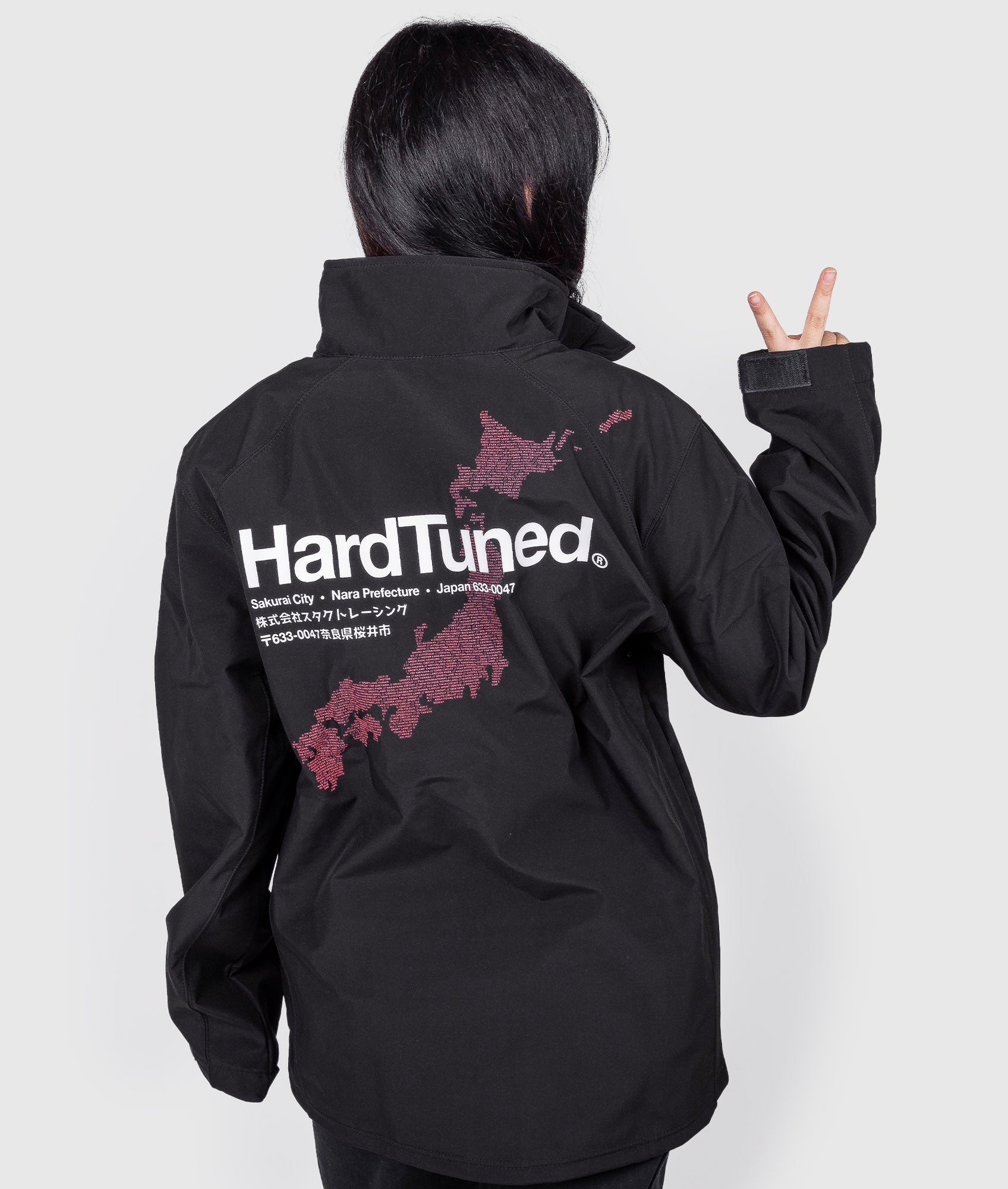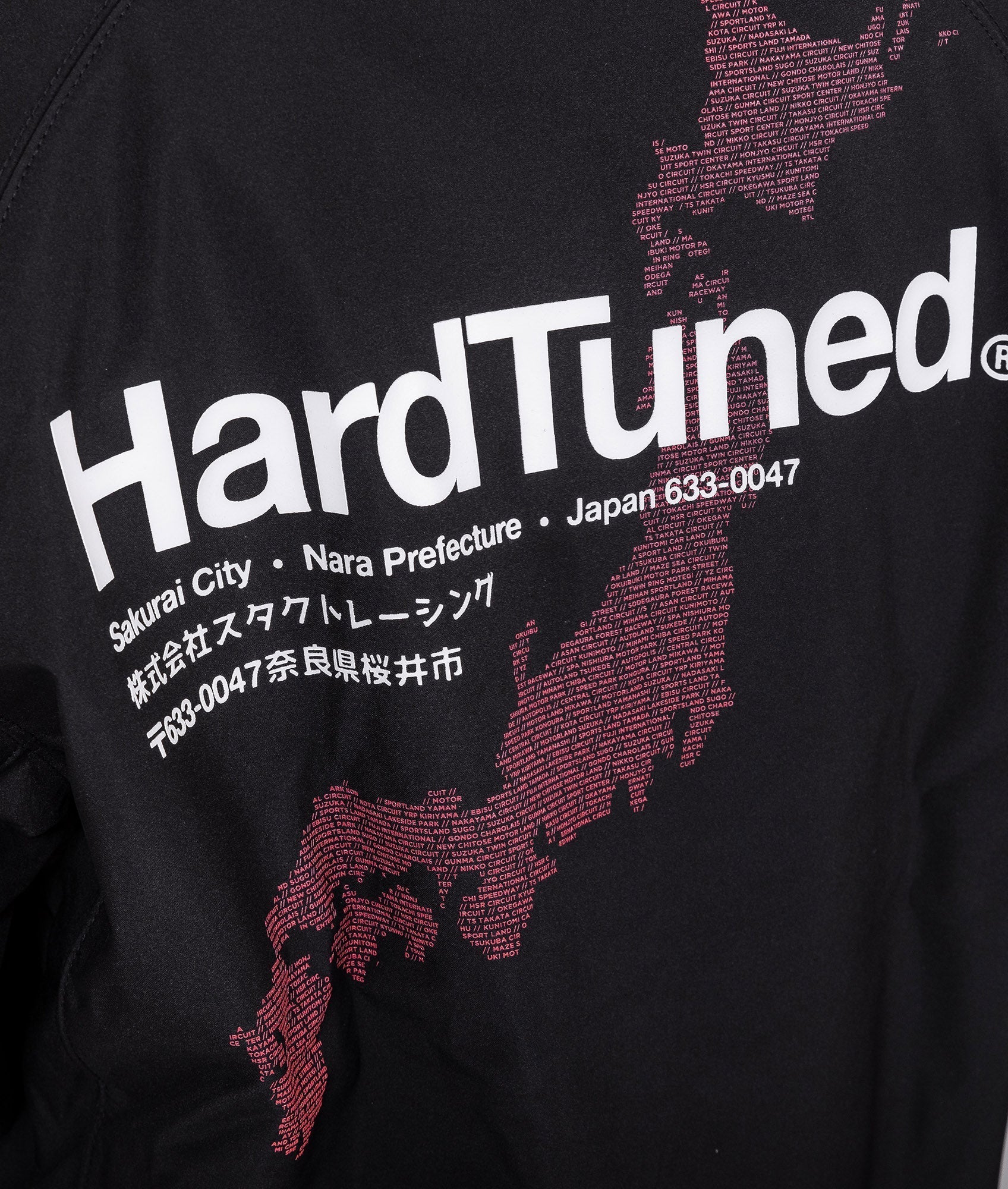 This functional, soft-shell jacket features an impressive print of Japan's map outline, made up of small, high-density rubber prints of all the iconic race tracks the country has to offer.