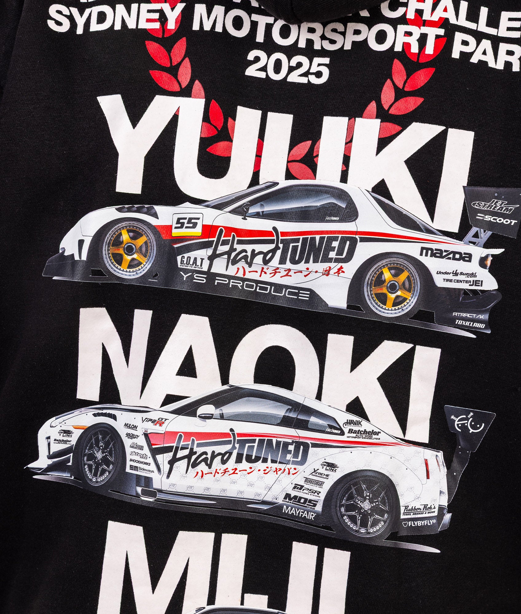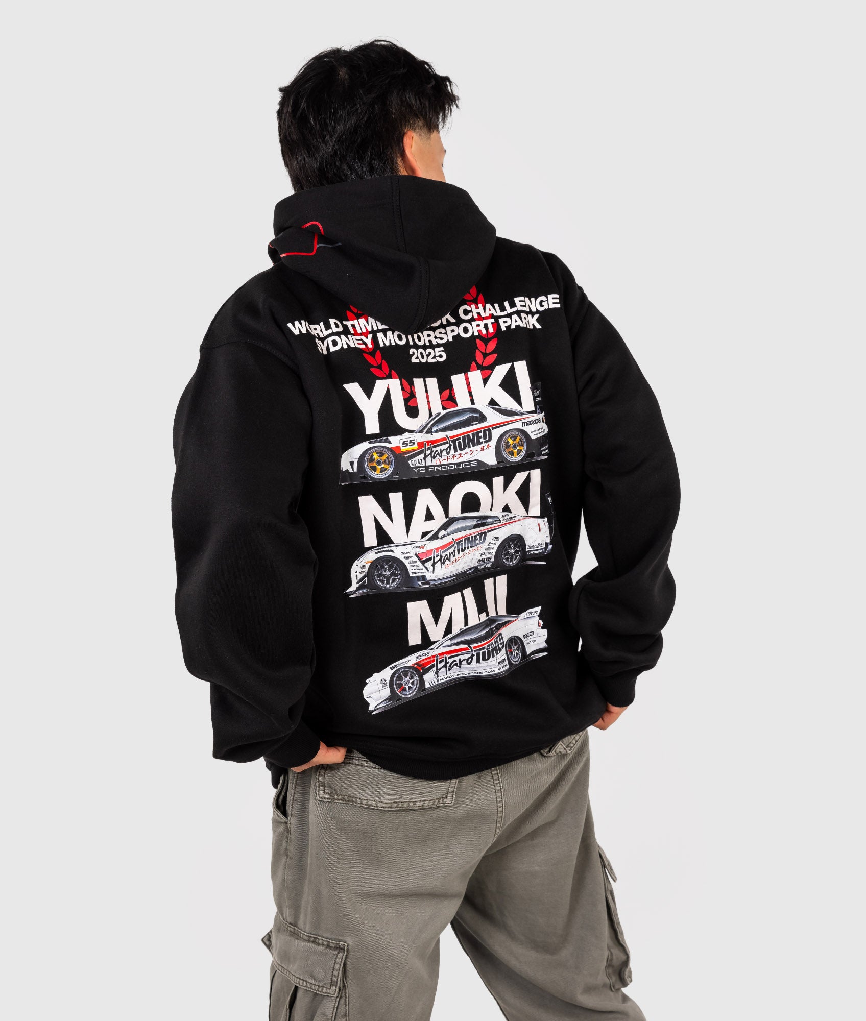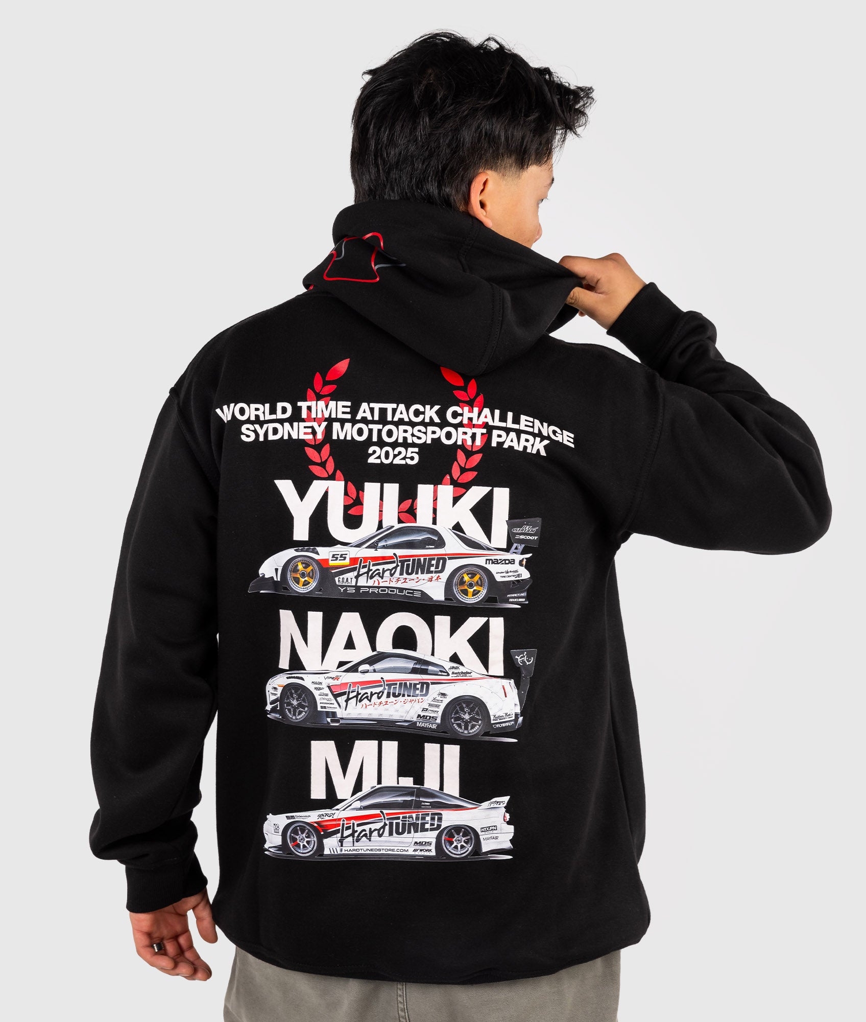 Featuring Hardtuned's three powerhouse drivers - Yuuki Kamakura, Naoki Nakamura, and Miji Takagi, these hoodies were a sellout at the event. Now's your chance to feel a part of this iconic team.